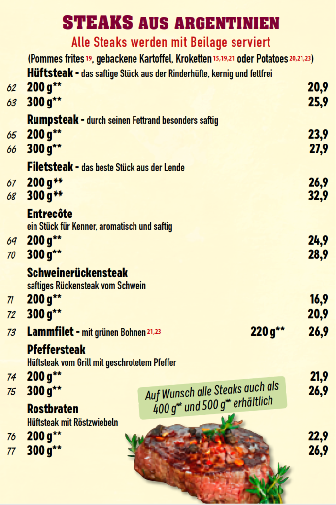 Hier finden Sie unsere Speisekarte mit allen Leckereien. Wir haben auch eine Speisekarte für Allergiker!